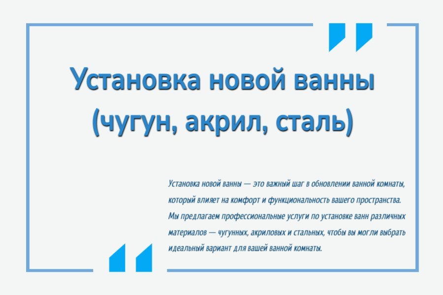 - Качественные материалы и оборудование: Мы используем только проверенные материалы и современное оборудование для установки ванн, что обеспечивает долговечность и надежность.